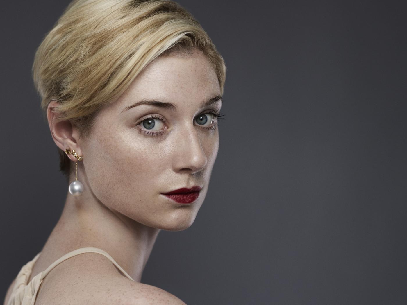 Обои Красивая блондинка актриса Элизабет Дебики, фото на белом фоне