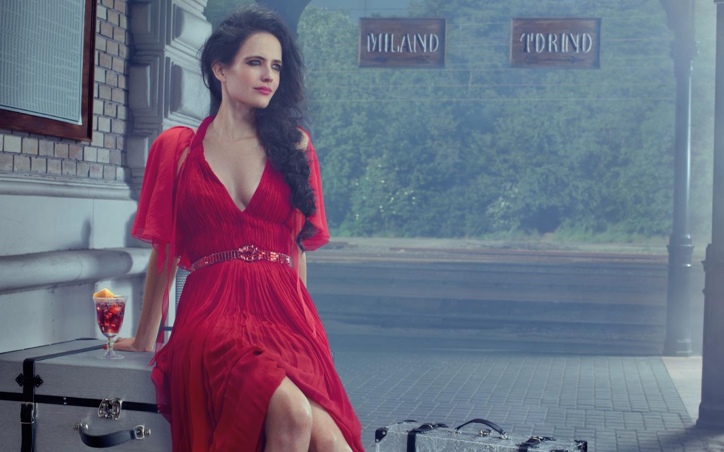 Обои Актриса Ева Грин в красном платье