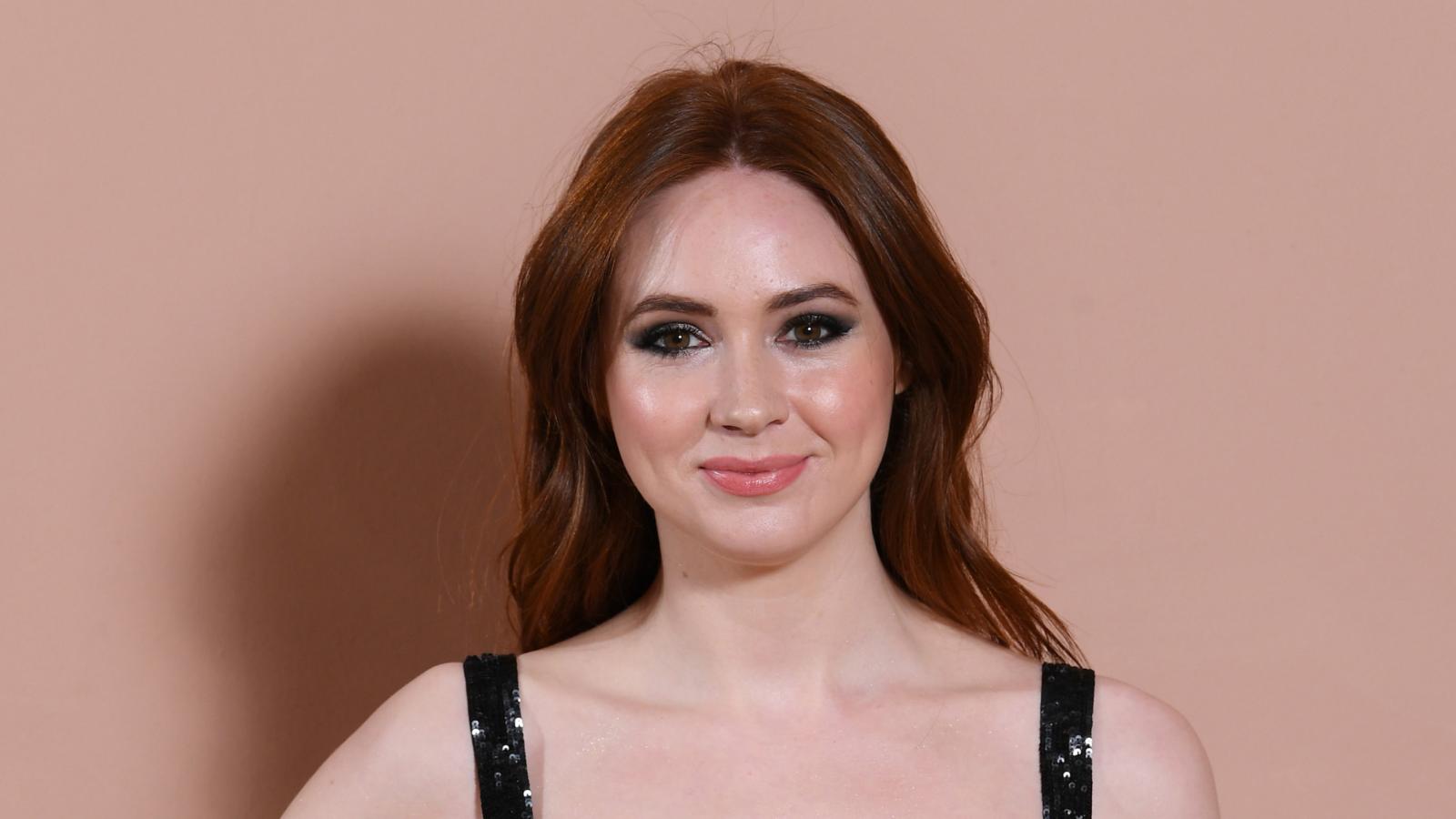 Обои Улыбающаяся актриса Карен Гиллан