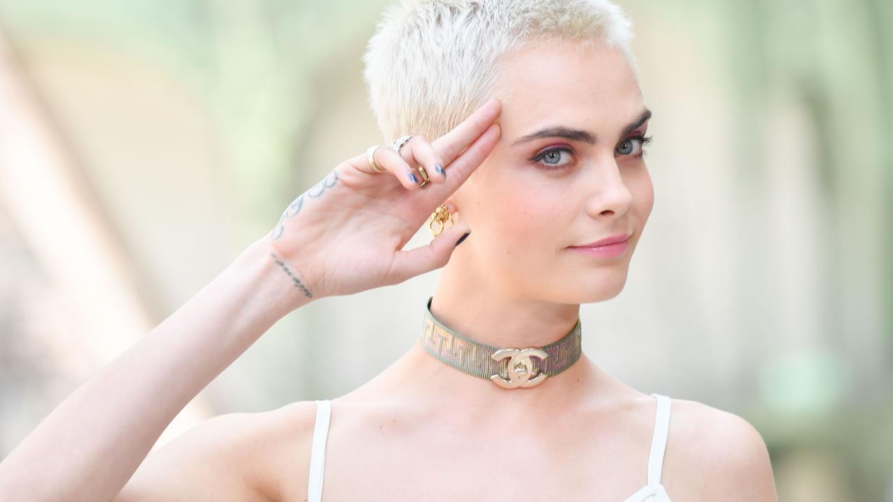 Обои Актриса Кара Делевинь с короткой стрижкой и татуировкой на руке