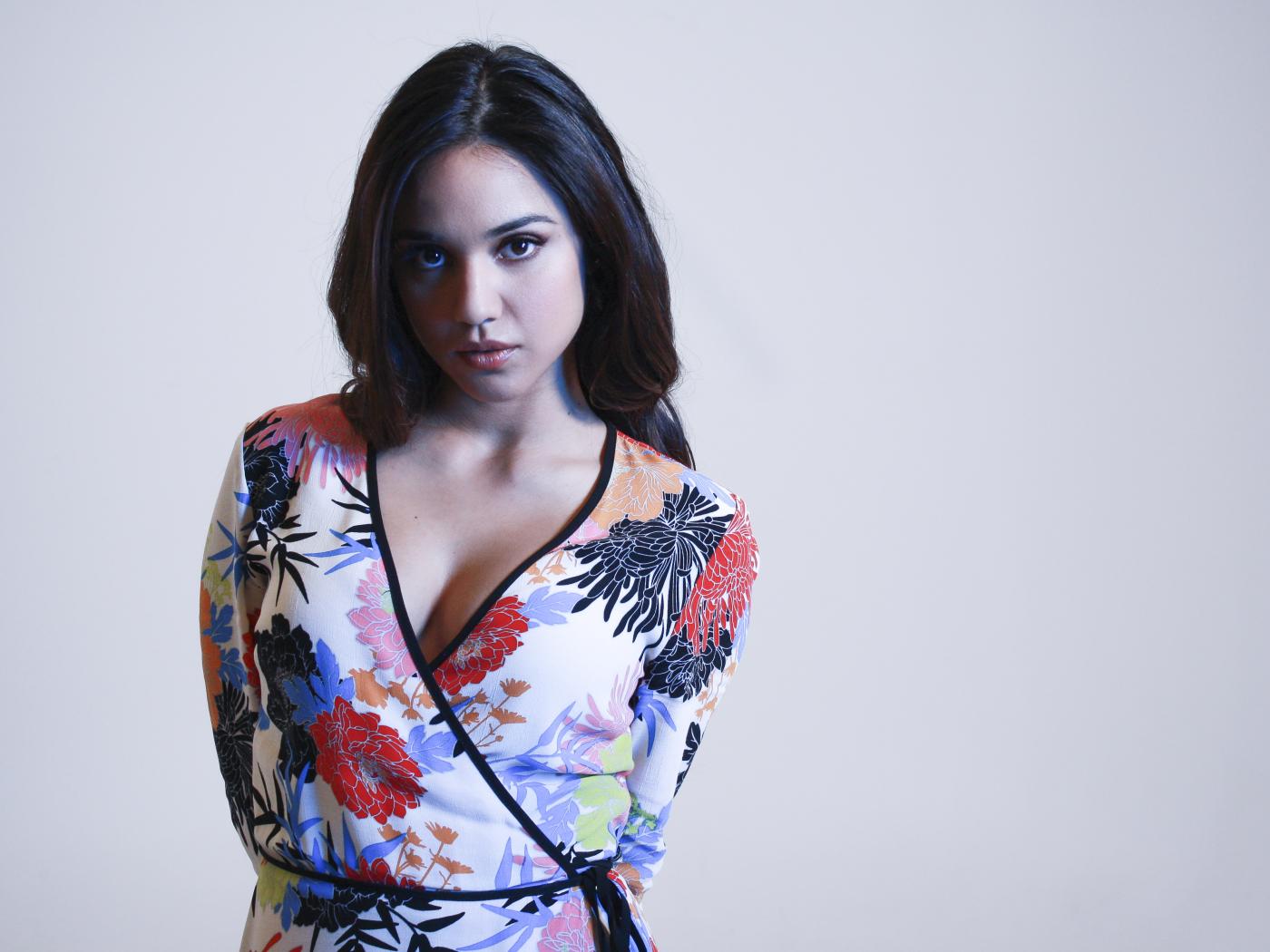 Обои Американская актриса Саммер Бишил фото на сером фоне