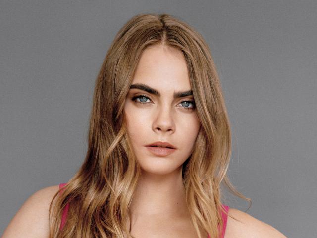 Обои Молодая актриса Кара Делевинь фото на сером фоне