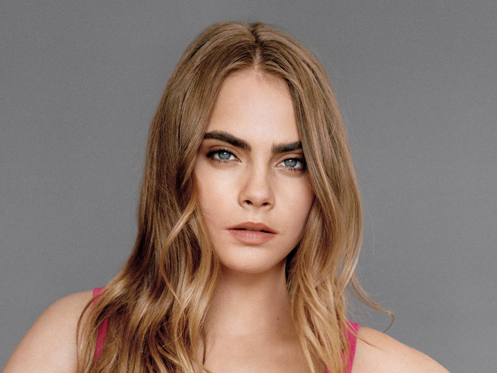 Обои Молодая актриса Кара Делевинь фото на сером фоне