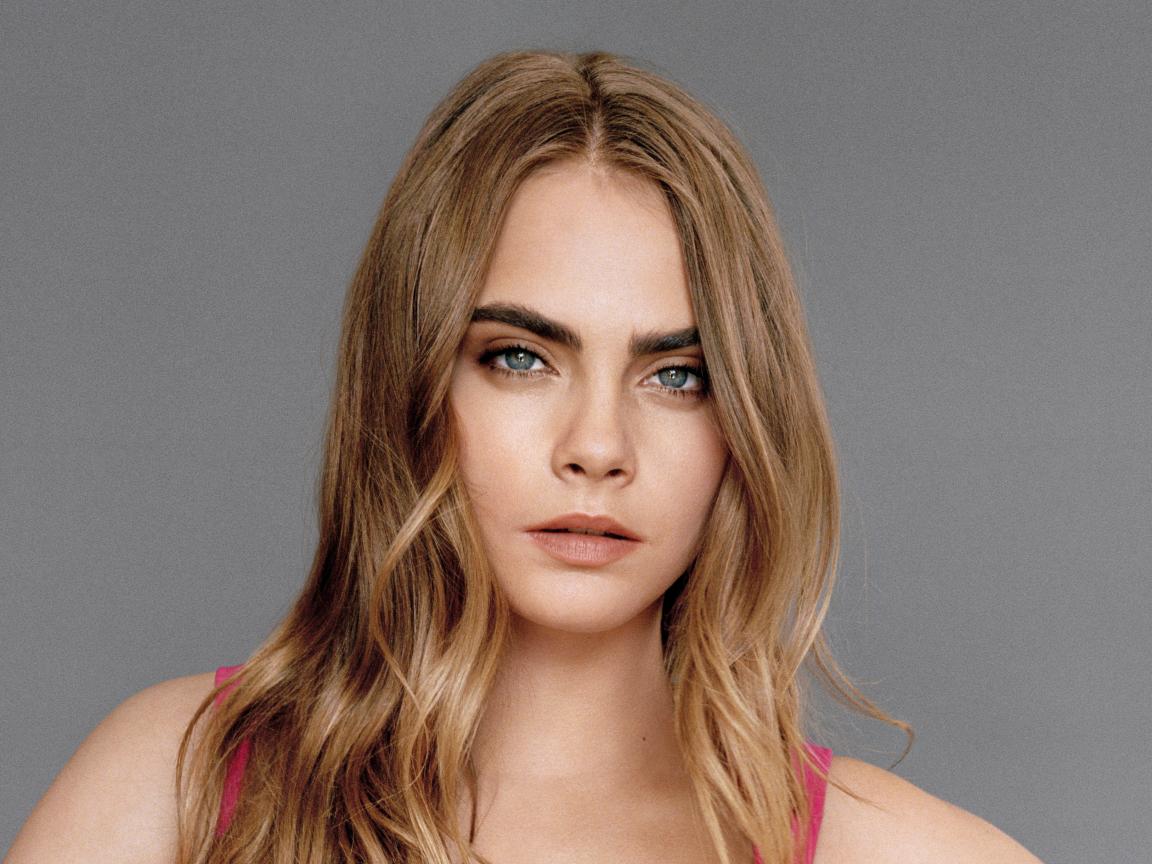 Обои Молодая актриса Кара Делевинь фото на сером фоне