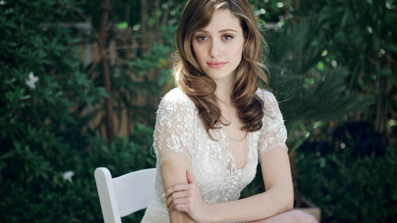 Обои Нежная девушка актриса Эмми Россум с белом платье