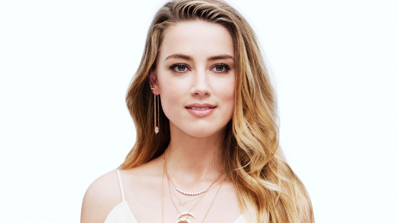 Обои Красивая блондинка актриса Эмбер Хёрд фото на белом фоне