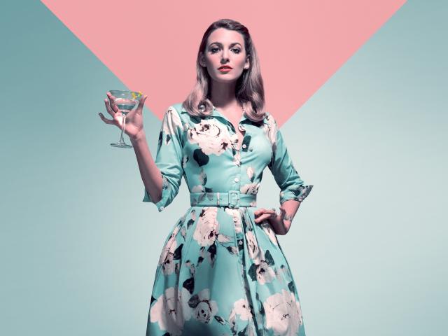 Обои Актриса Блейк Лайвли в красивом платье с бокалом