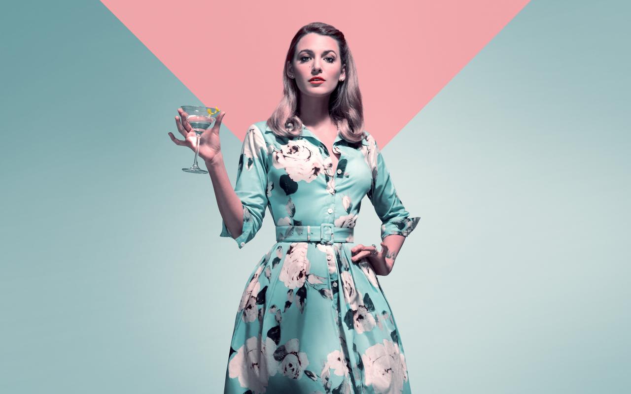 Обои Актриса Блейк Лайвли в красивом платье с бокалом