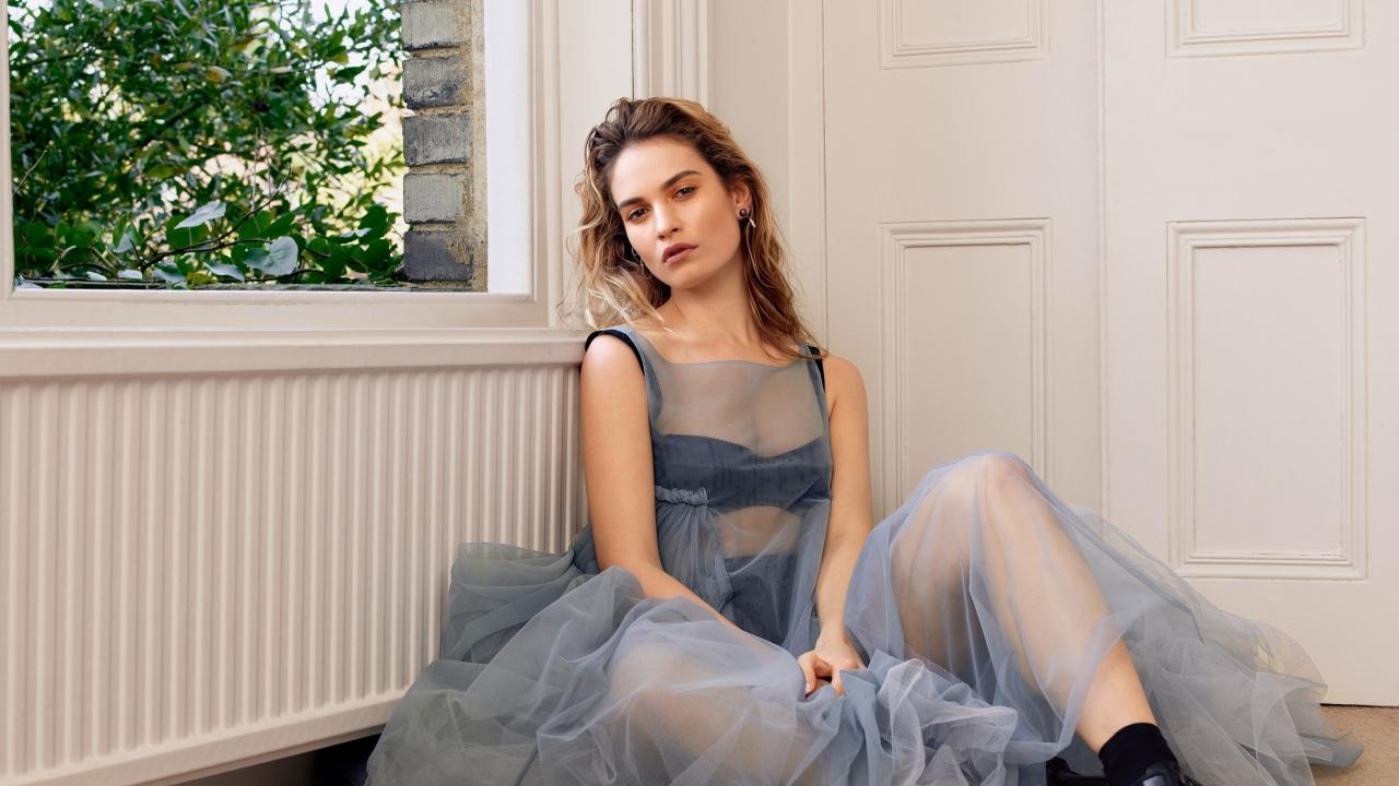 Обои Нежная девушка актриса Лили Джеймс в красивом платье