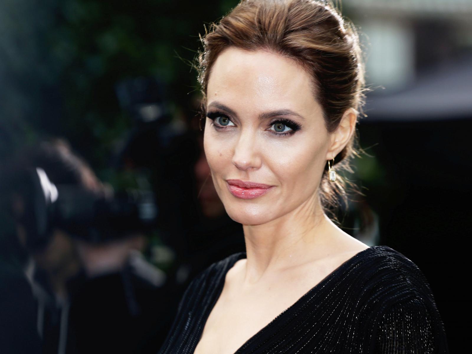 Обои Красивая популярная актриса Анджелина Джоли в черном платье
