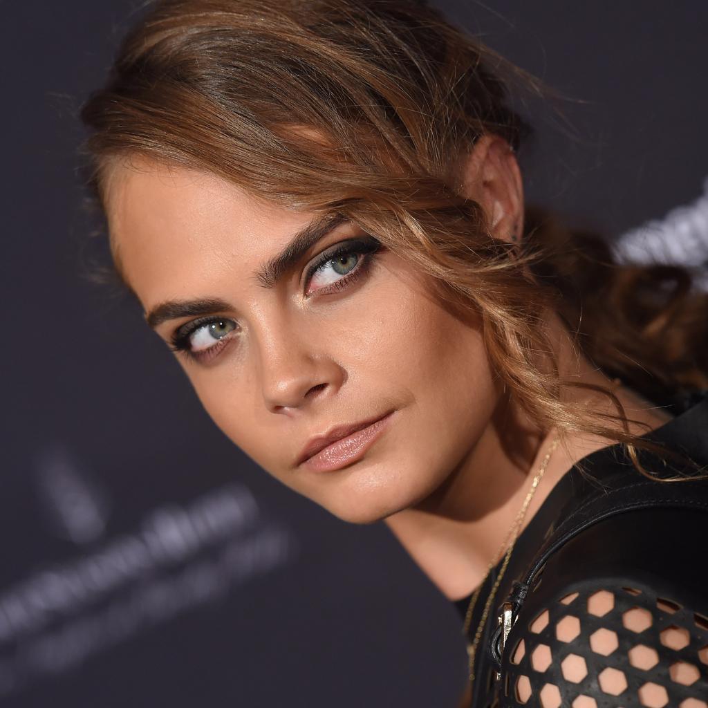 Обои Молодая красивая актриса Кара Делевинь в черном наряде