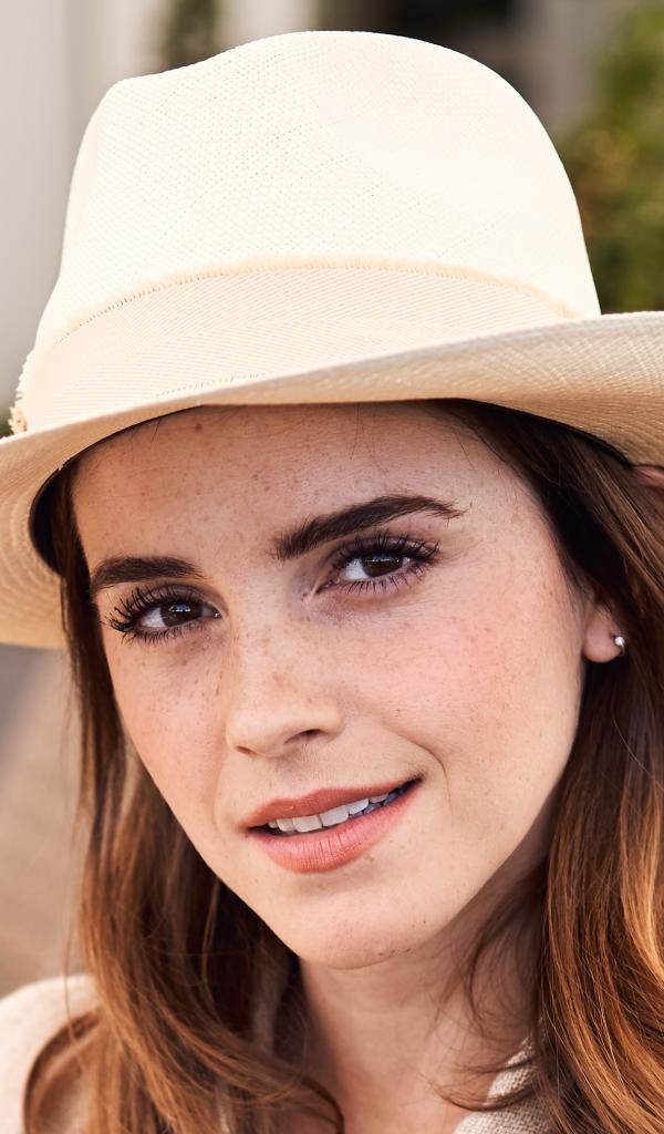 Обои Популярная актриса Эмма Уотсон в белой шляпе