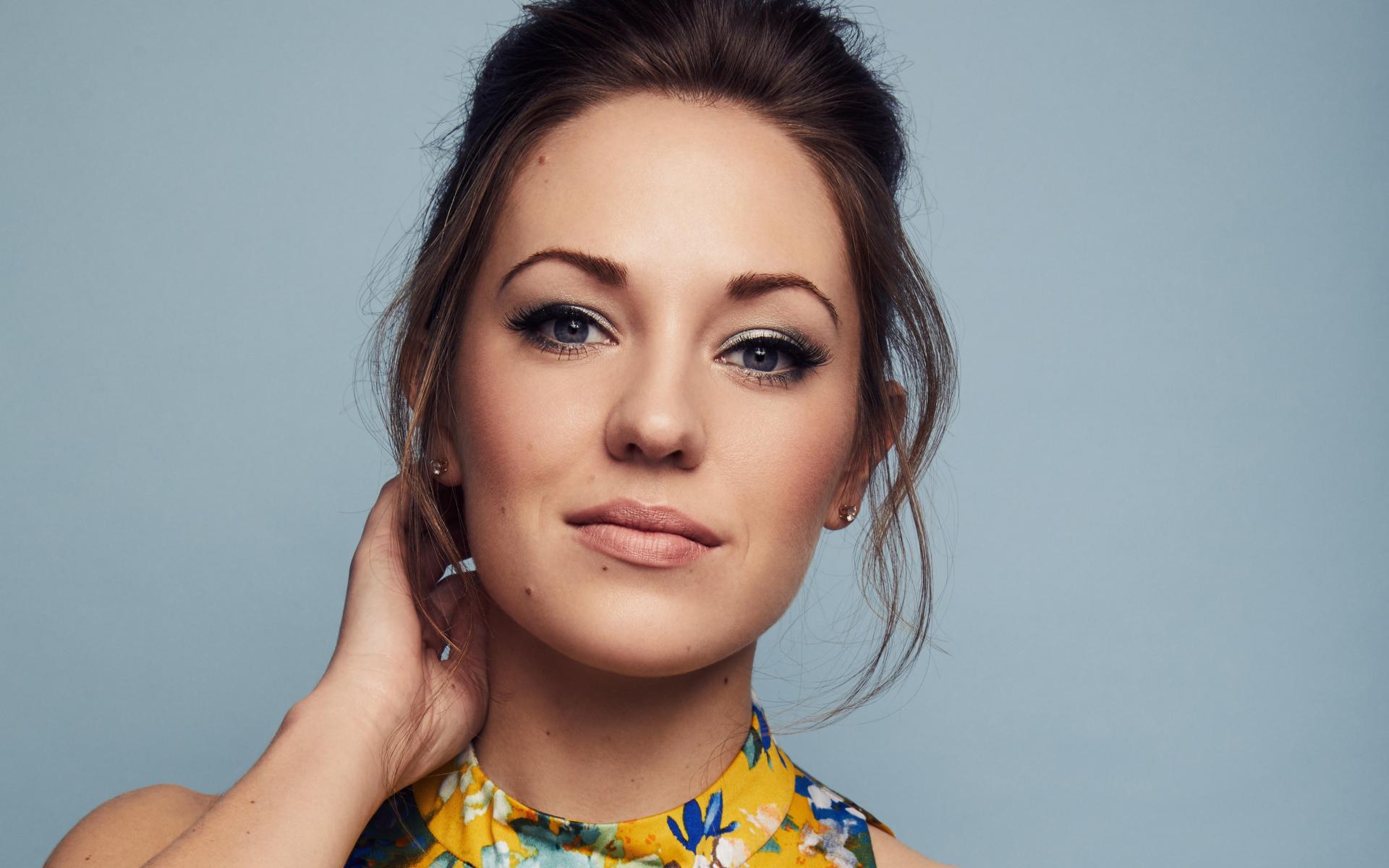 Обои Американская актриса Лора Оснс на сером фоне