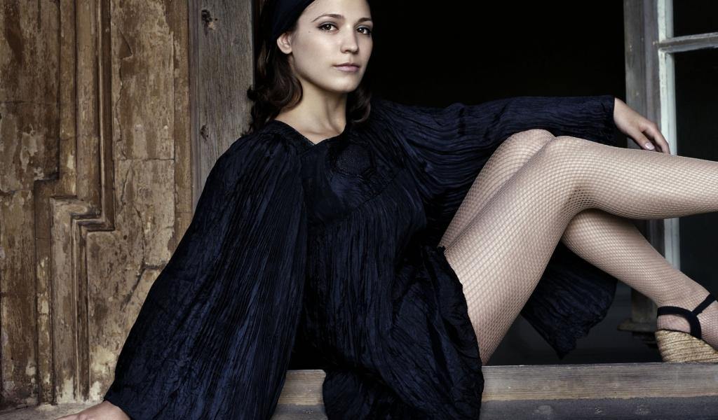 Обои Девушка актриса Элис Ив в черном красивом платье