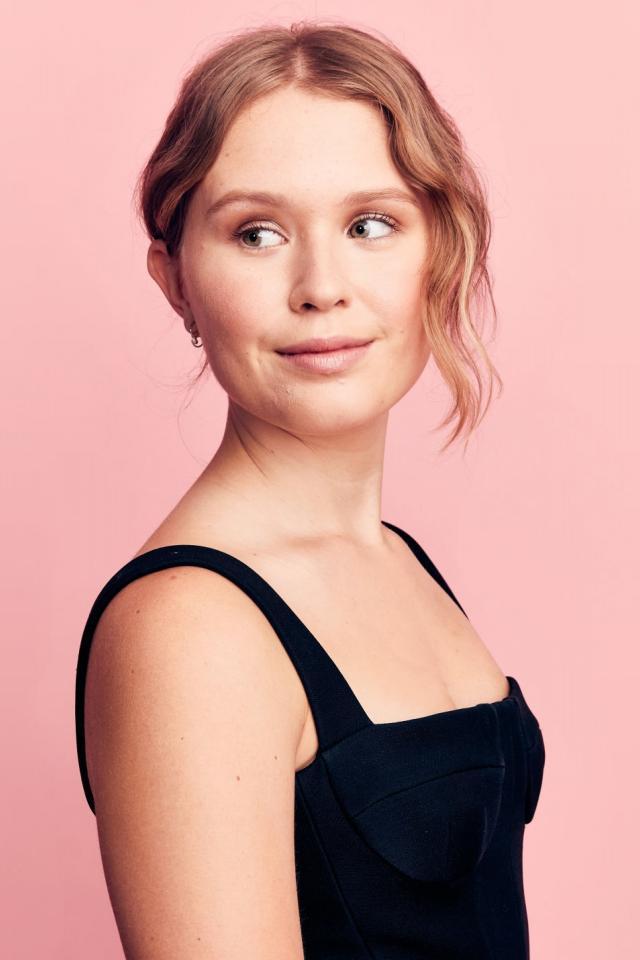 Обои Красивая актриса Элайза Сканлен фото на розовом фоне