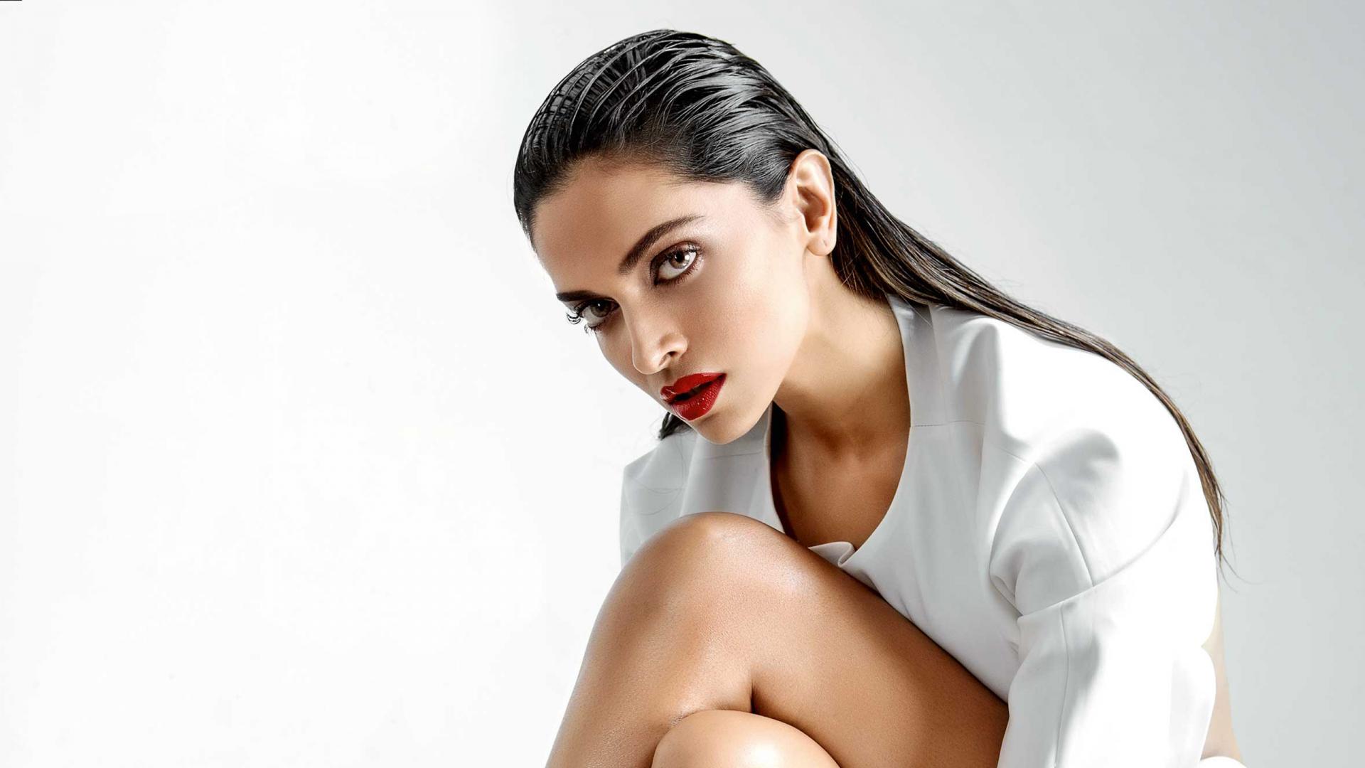 Обои Индийская актриса Дипика Падуконе на сером фоне
