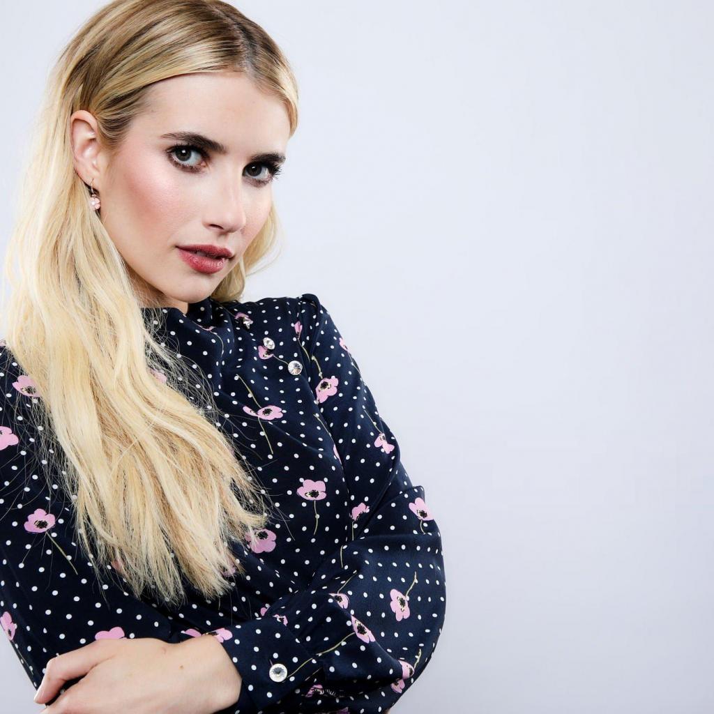 Обои Актриса Эмма Робертс в платье на сером фоне