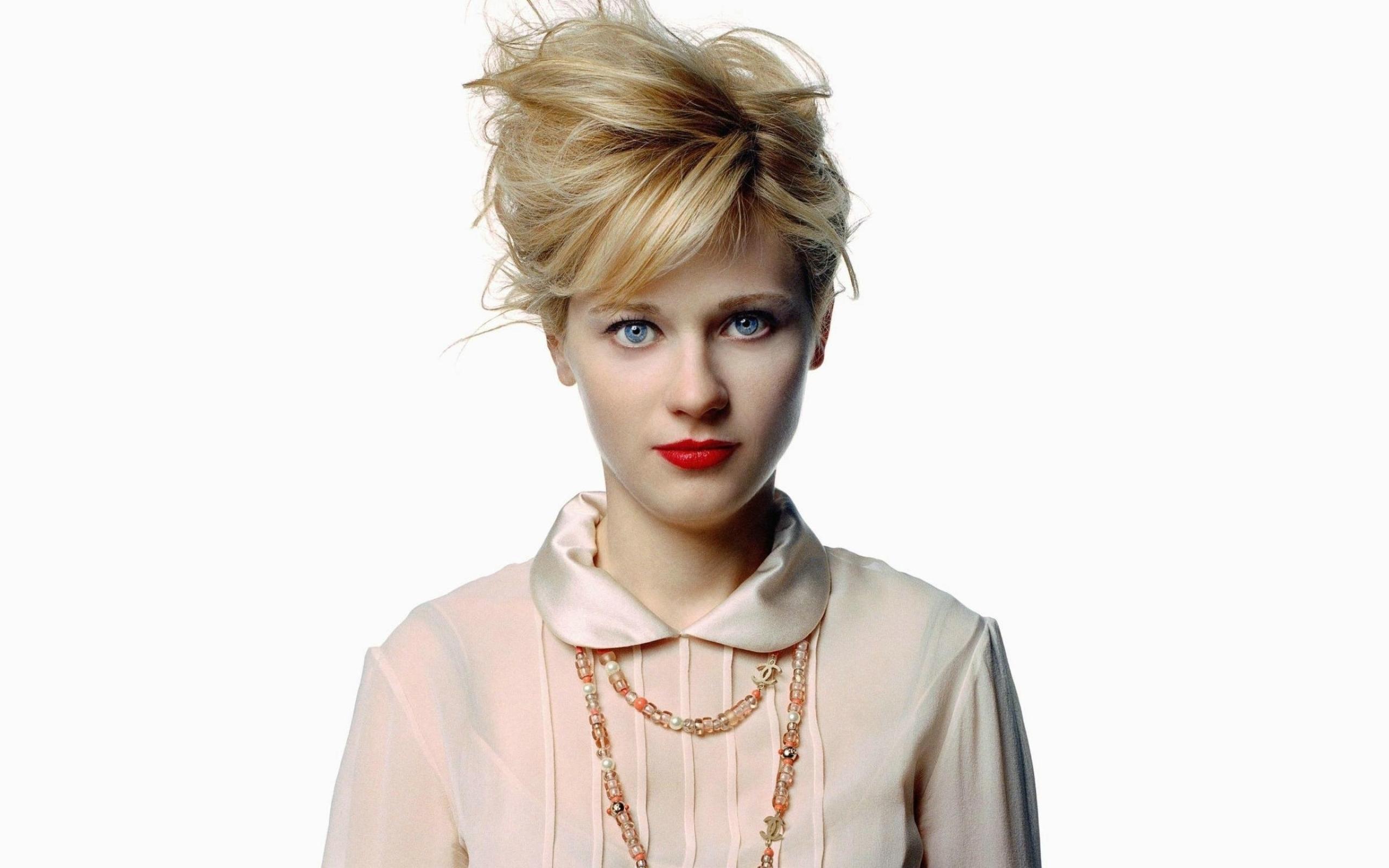 Обои Американская актриса Зоуи Дешанель на белом фоне