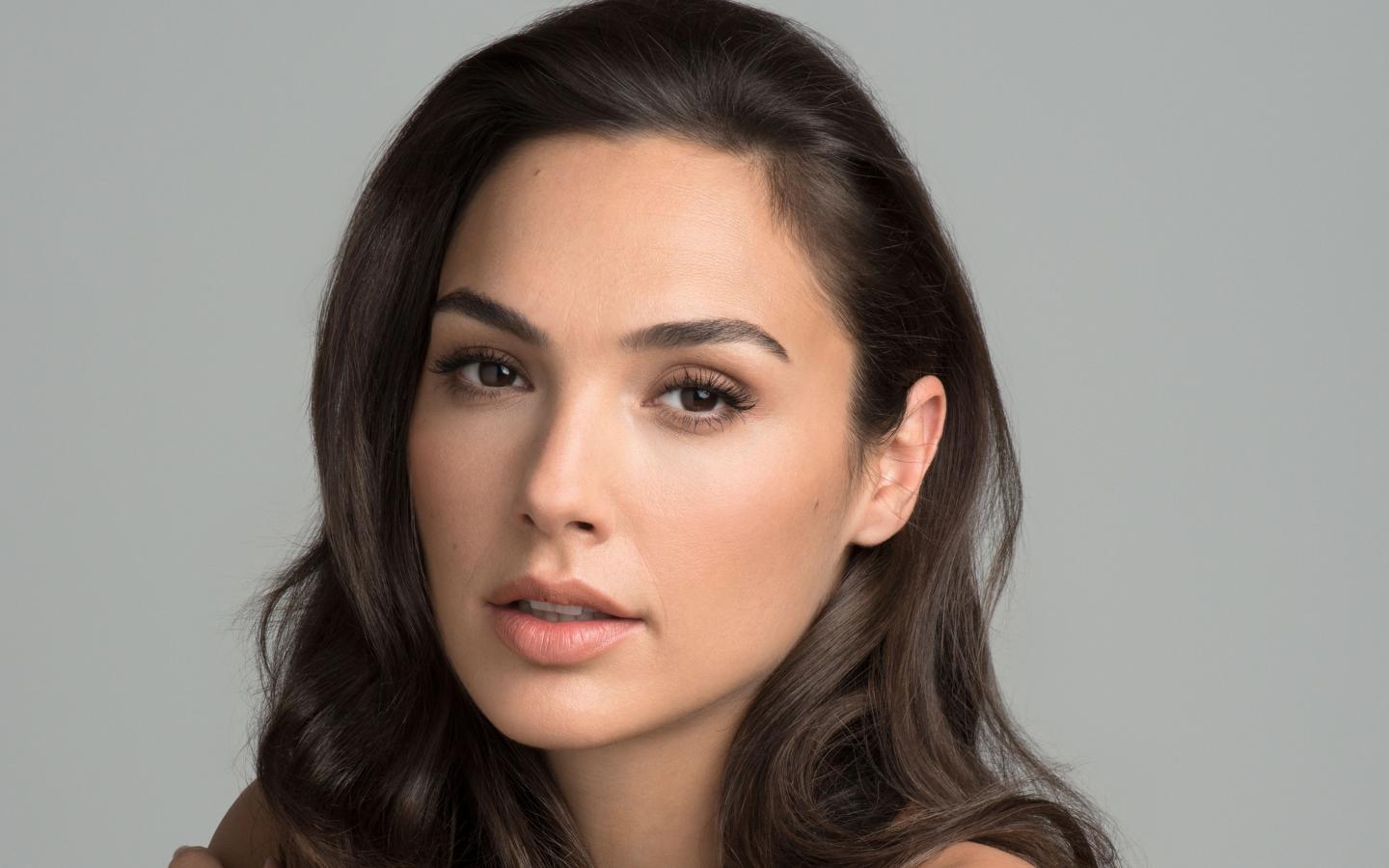 Обои Нежная Галь Гадот на сером фоне
