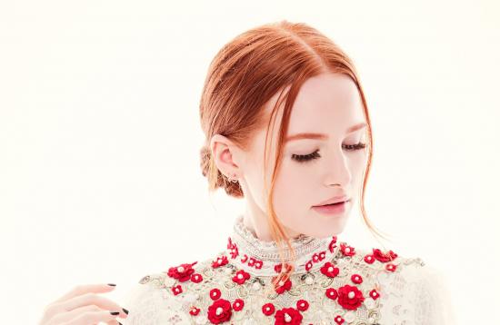 Обои Рыжеволосая актриса Мэделин Петш на белом фоне