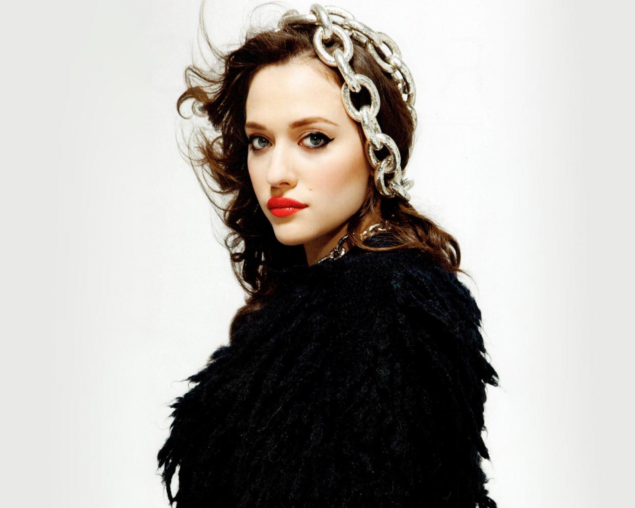 Обои Яркая девушка, актриса Кэт Деннингс с цепями на голове