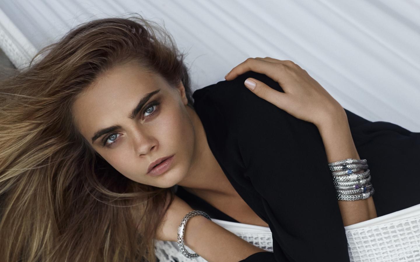Обои Красивая девушка актриса, модель Кара Делевинь с браслетами на руках