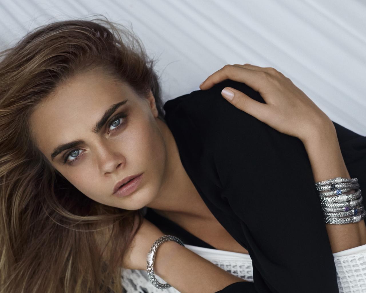 Обои Красивая девушка актриса, модель Кара Делевинь с браслетами на руках