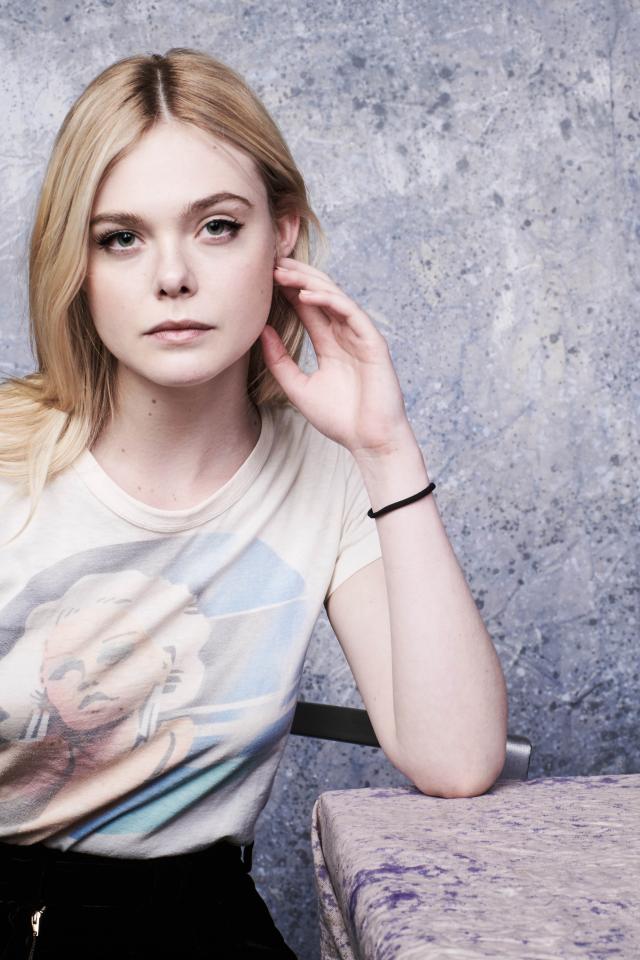 Обои Красивая актриса Эль Фаннинг сидит за столом