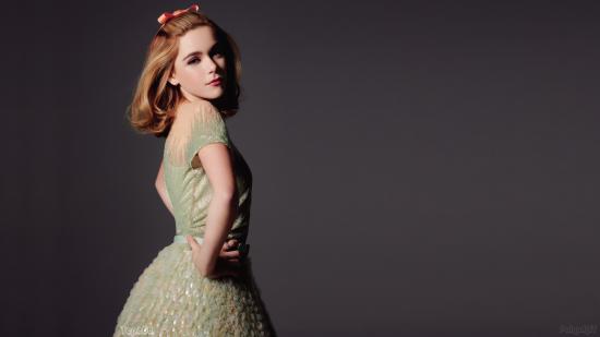 Обои Красивая американская актриса Кирнан Шипка на сером фоне