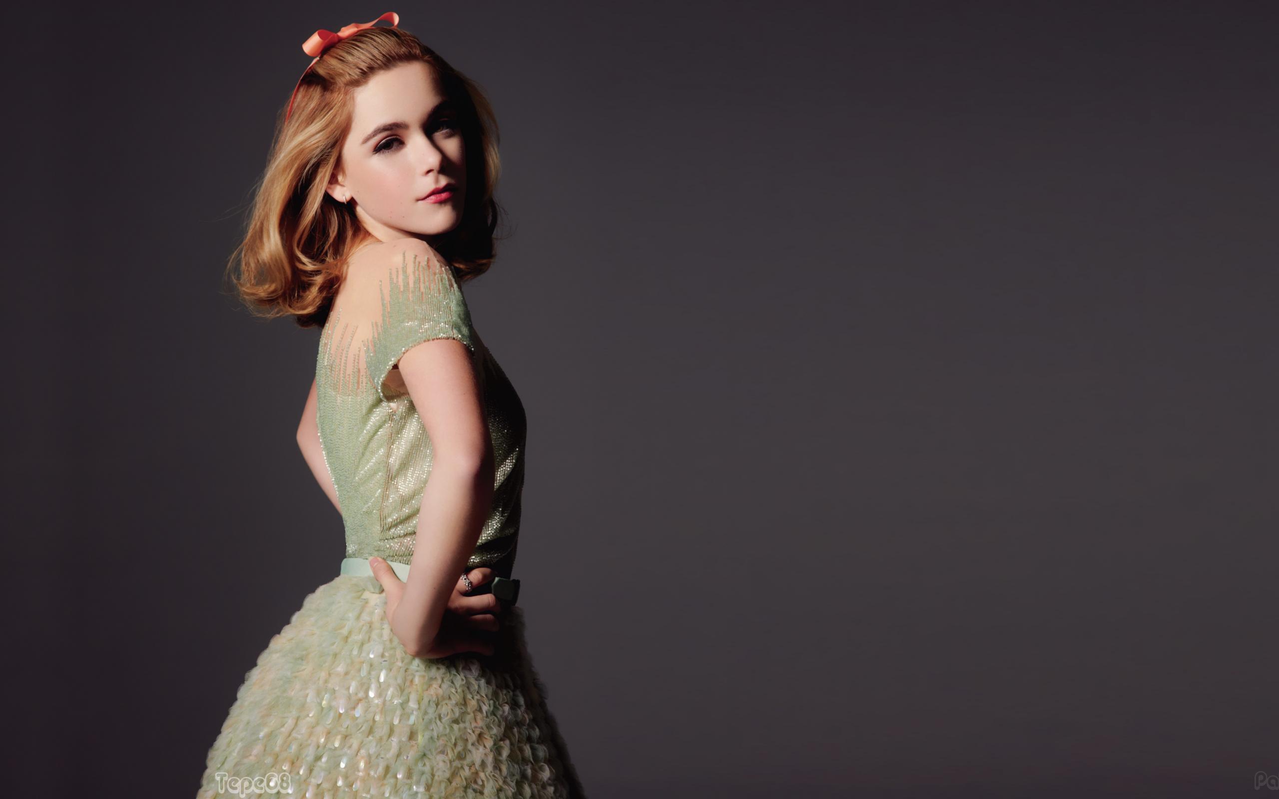 Обои Красивая американская актриса Кирнан Шипка на сером фоне