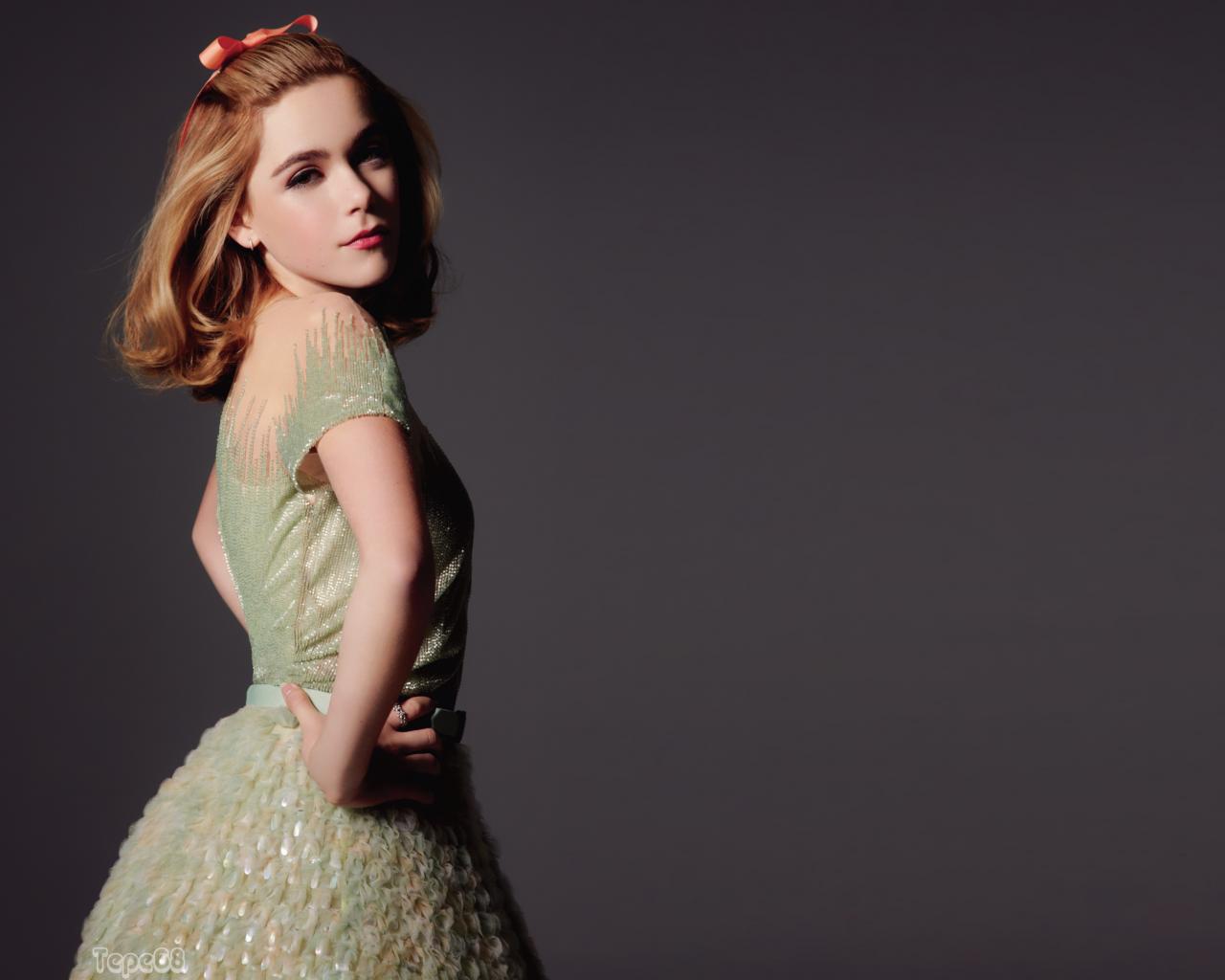 Обои Красивая американская актриса Кирнан Шипка на сером фоне