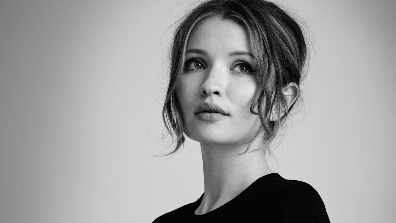 Обои Красивая молодая девушка актриса Эмили Браунинг черно-белое фото