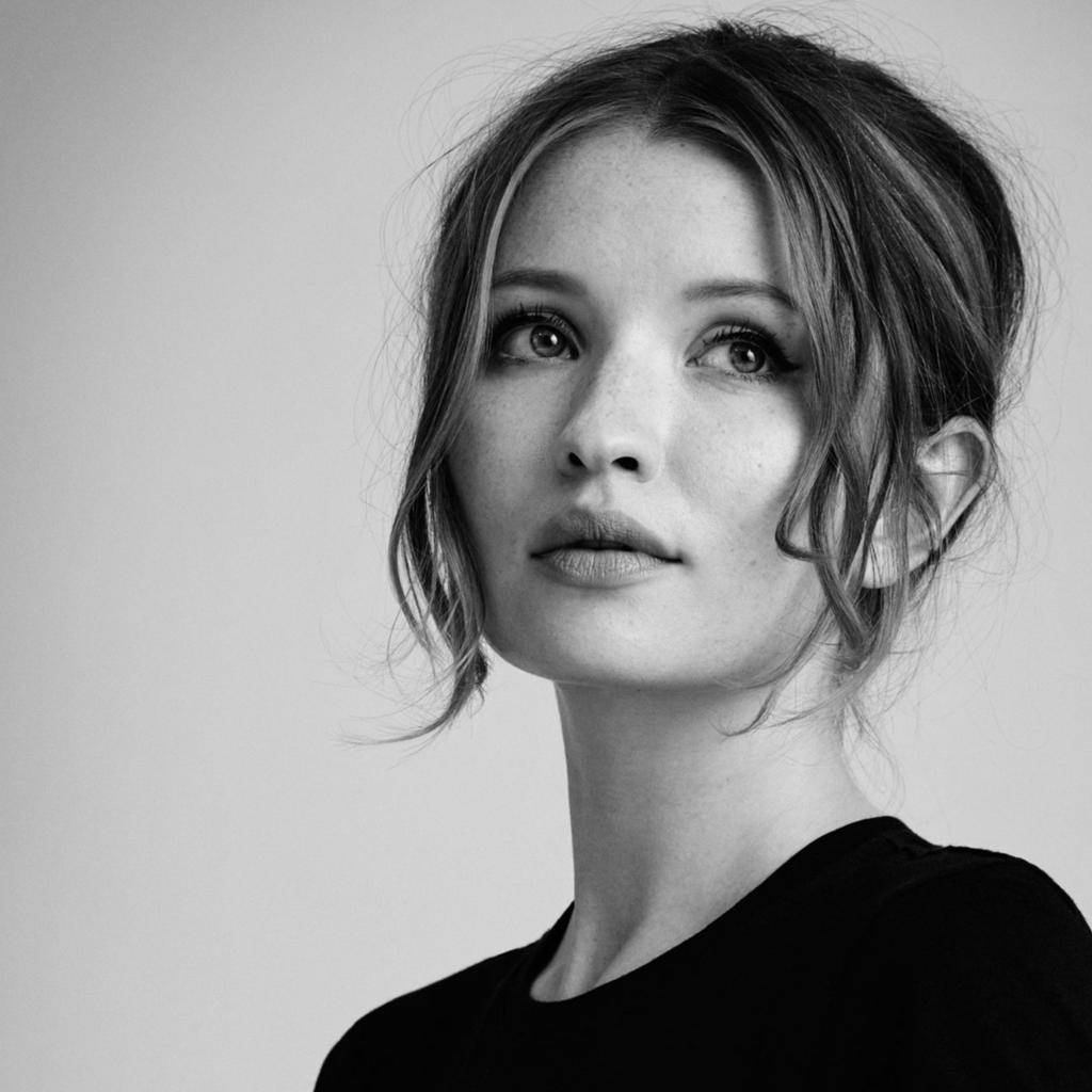 Обои Красивая молодая девушка актриса Эмили Браунинг черно-белое фото