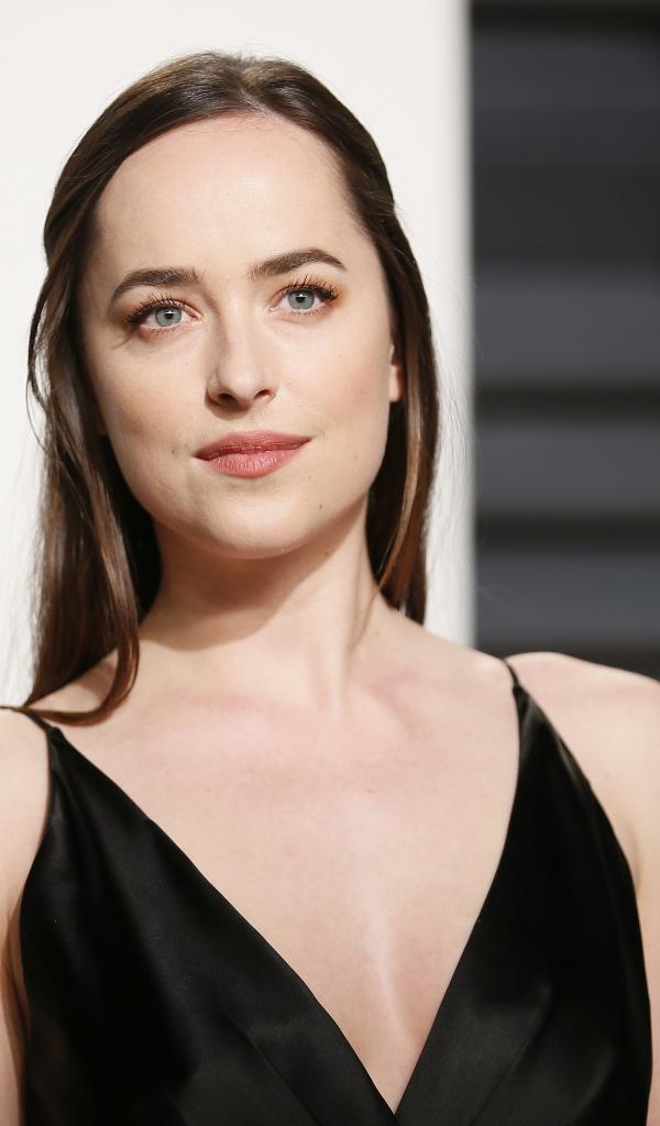 Обои Красивая голубоглазая девушка актриса Дакота Джонсон в черном платье