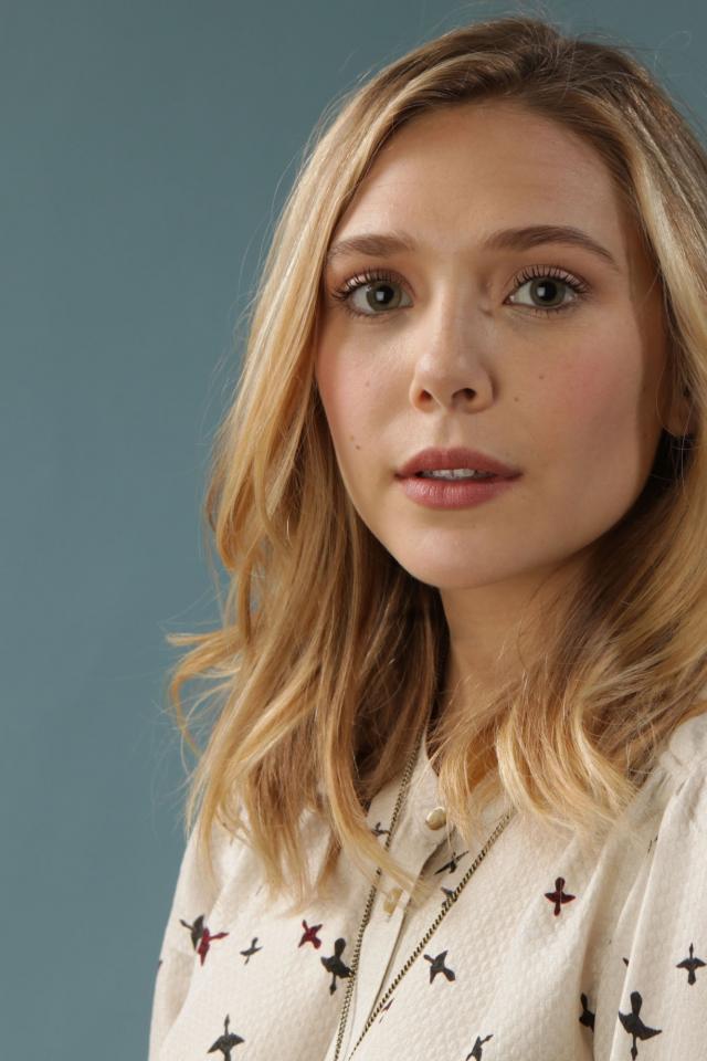 Обои Нежная девушка, актриса Элизабет Олсен на сером фоне