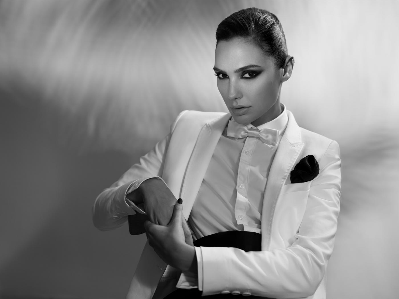 Обои Стильная актриса Галь Гадот в костюме черно белое фото