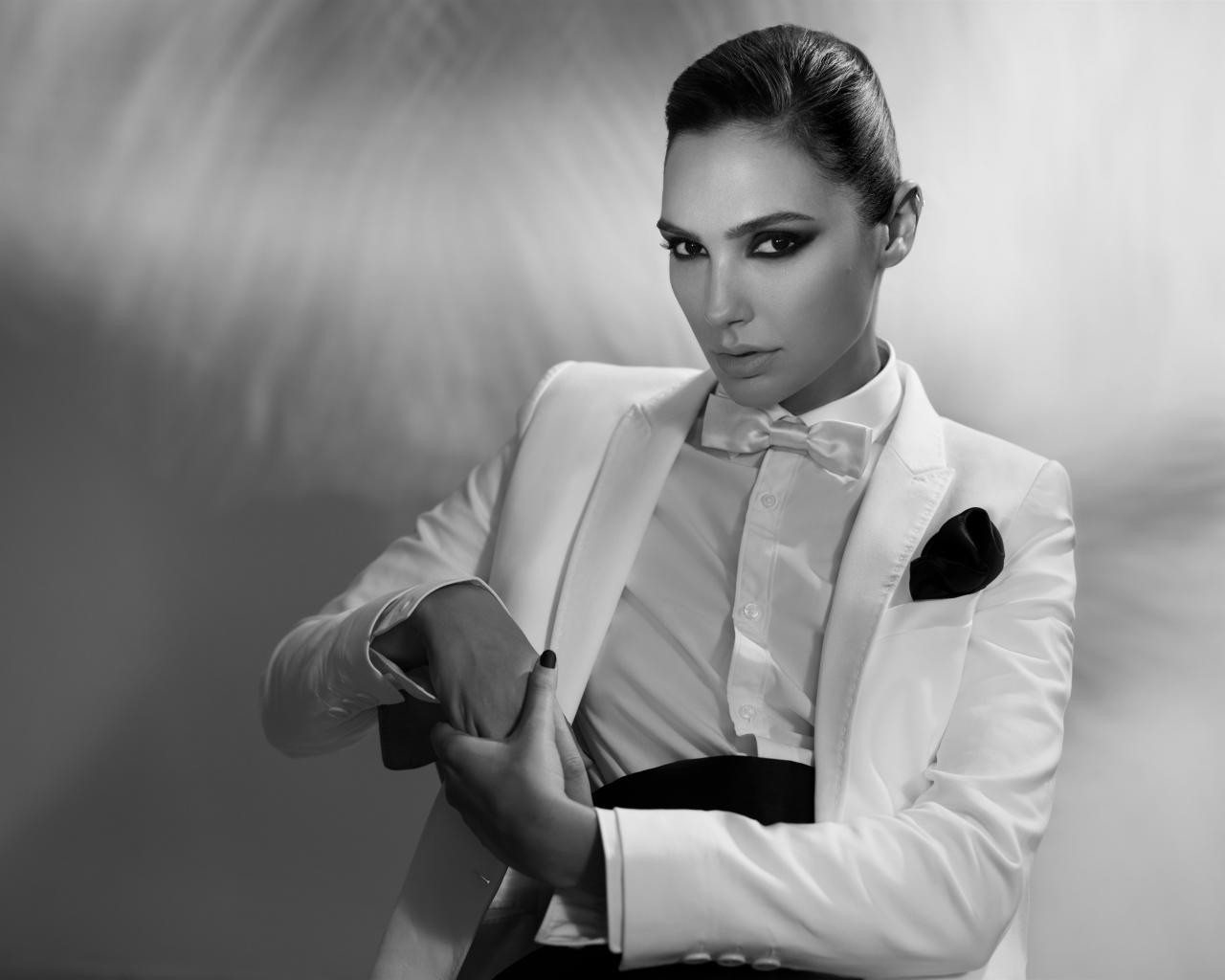 Обои Стильная актриса Галь Гадот в костюме черно белое фото
