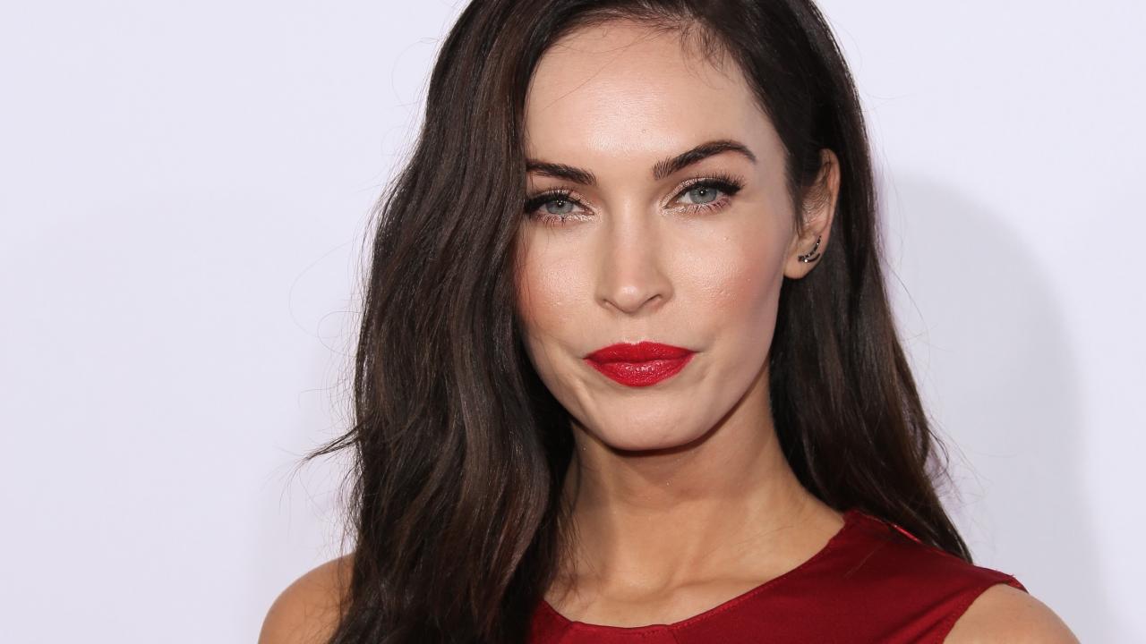 Обои Яркая женщина, актриса Меган Фокс на сером фоне