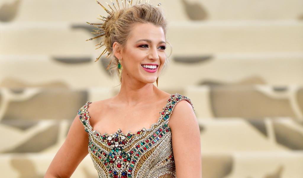 Обои Улыбающаяся актриса Блейк Лайвли в красивом наряде