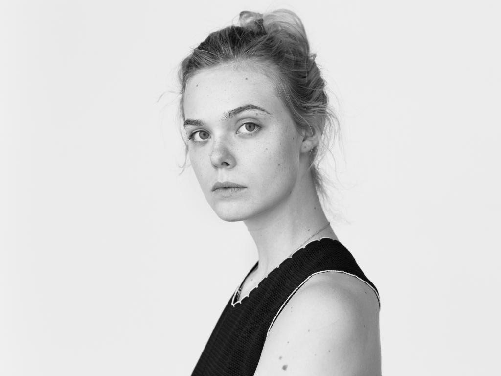 Обои Милая настоящая девушка, актриса Эль Фаннинг черно - белое фото