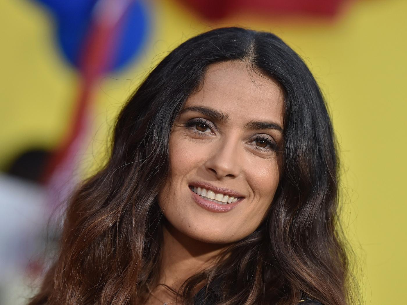 Обои Улыбающаяся кареглазая женщина, актриса Сальма Хайек