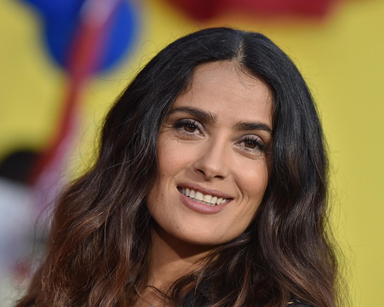 Обои Улыбающаяся кареглазая женщина, актриса Сальма Хайек