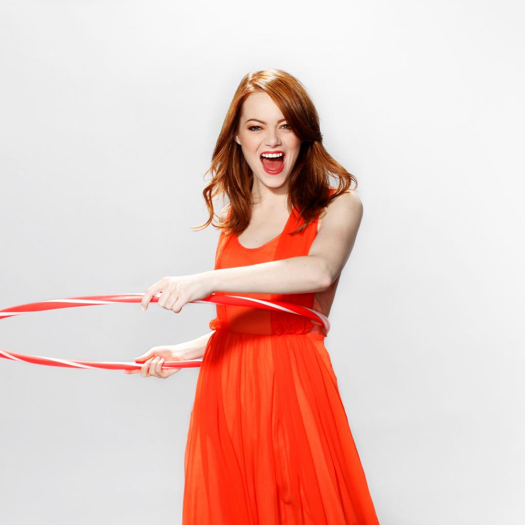 Обои Актриса Эмма Стоун крутит обруч на талии