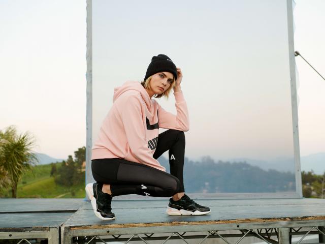Обои Молодая модель, актриса Кара Делевинь в спортивном костюме