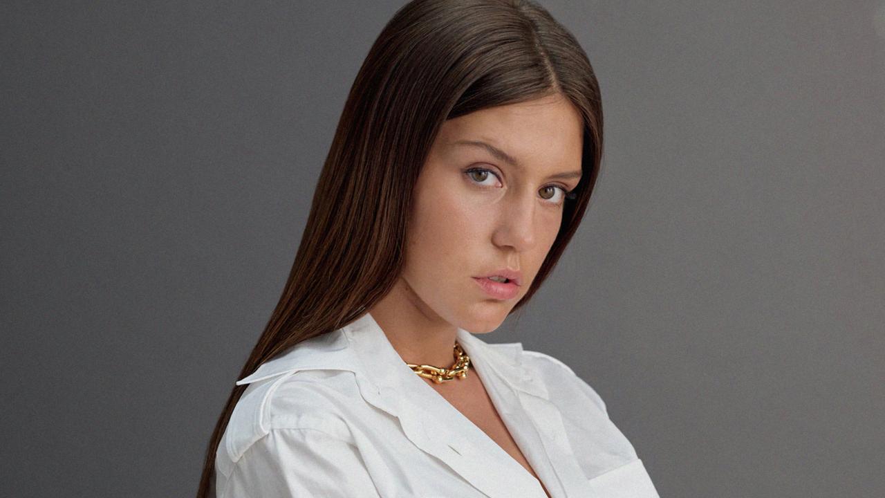 Обои Молодая французская актриса Адель Экзаркопулос на сером фоне