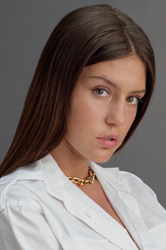 Обои Молодая французская актриса Адель Экзаркопулос на сером фоне