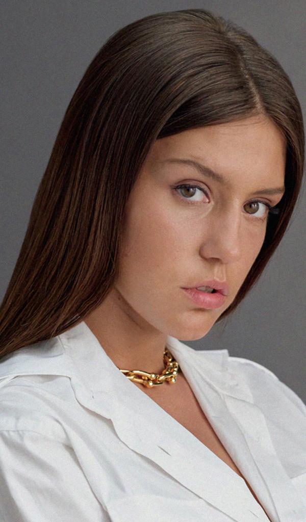 Обои Молодая французская актриса Адель Экзаркопулос на сером фоне