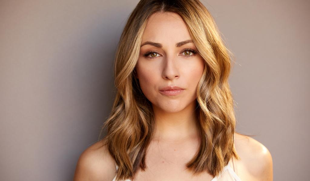 Обои Красивая блондинка Никки Поснер на сером фоне