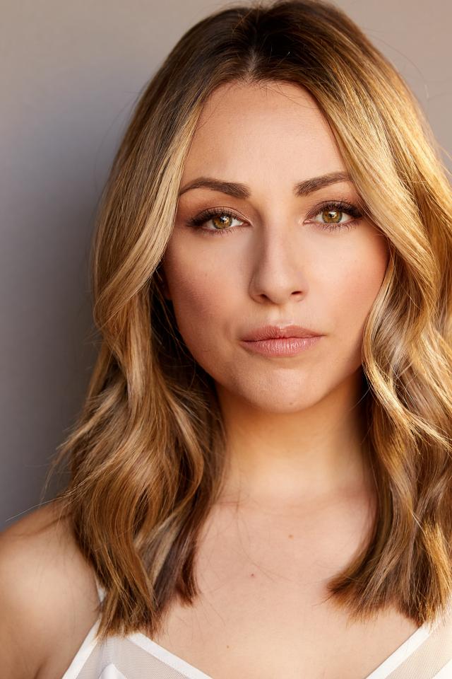 Обои Красивая блондинка Никки Поснер на сером фоне