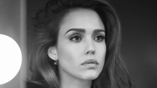 Обои Лицо актрисы Джессики Альбы черно белое фото